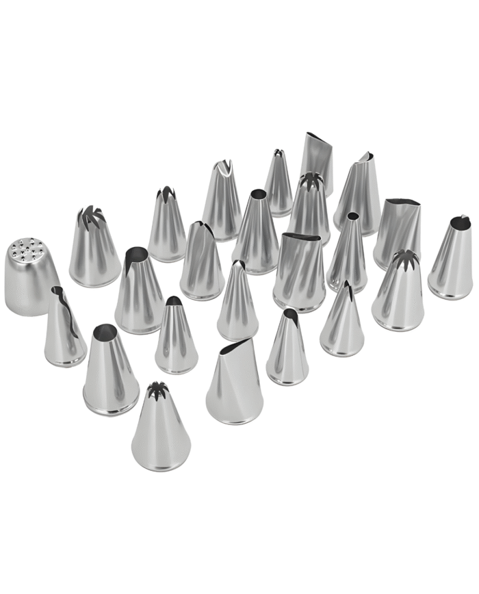 Take your cake decorating skills to the next level with this 24-Pc Stainless Steel Icing Nozzles Set. Designed for both beginners and professional bakers, this set includes a wide variety of piping tips to create stunning designs — from swirls, rosettes, leaves, stars, petals, borders, and more.
