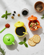 Add a splash of color and convenience to your dining table with this vibrant 3-piece condiment jar set. Designed in bold green, yellow, and orange, each jar comes with a matching lid and spoon, making it perfect for neatly storing and serving spices, chutneys, sauces, pickles, or small snacks.