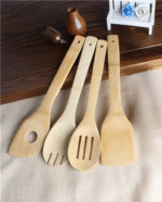 4 Pieces Bamboo Spoon Spatula Kitchen Utensil Wooden Cooking Tool Mixing Set