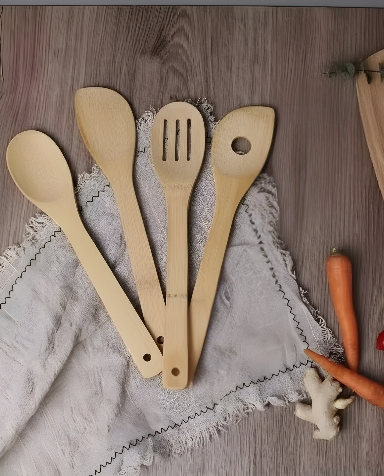 Upgrade your kitchen with this 4-Piece Bamboo Wooden Cooking Spoon Set, designed for everyday cooking and serving. Made from 100% natural bamboo, these spoons are eco-friendly, durable, and safe for non-stick cookware. The set includes a variety of spoon styles, perfect for stirring, mixing, sautéing, and serving all types of dishes. Lightweight yet strong, these bamboo spoons resist heat, stains, and odors, making them a healthier alternative to plastic utensils
