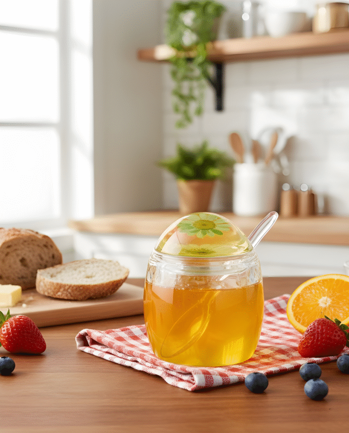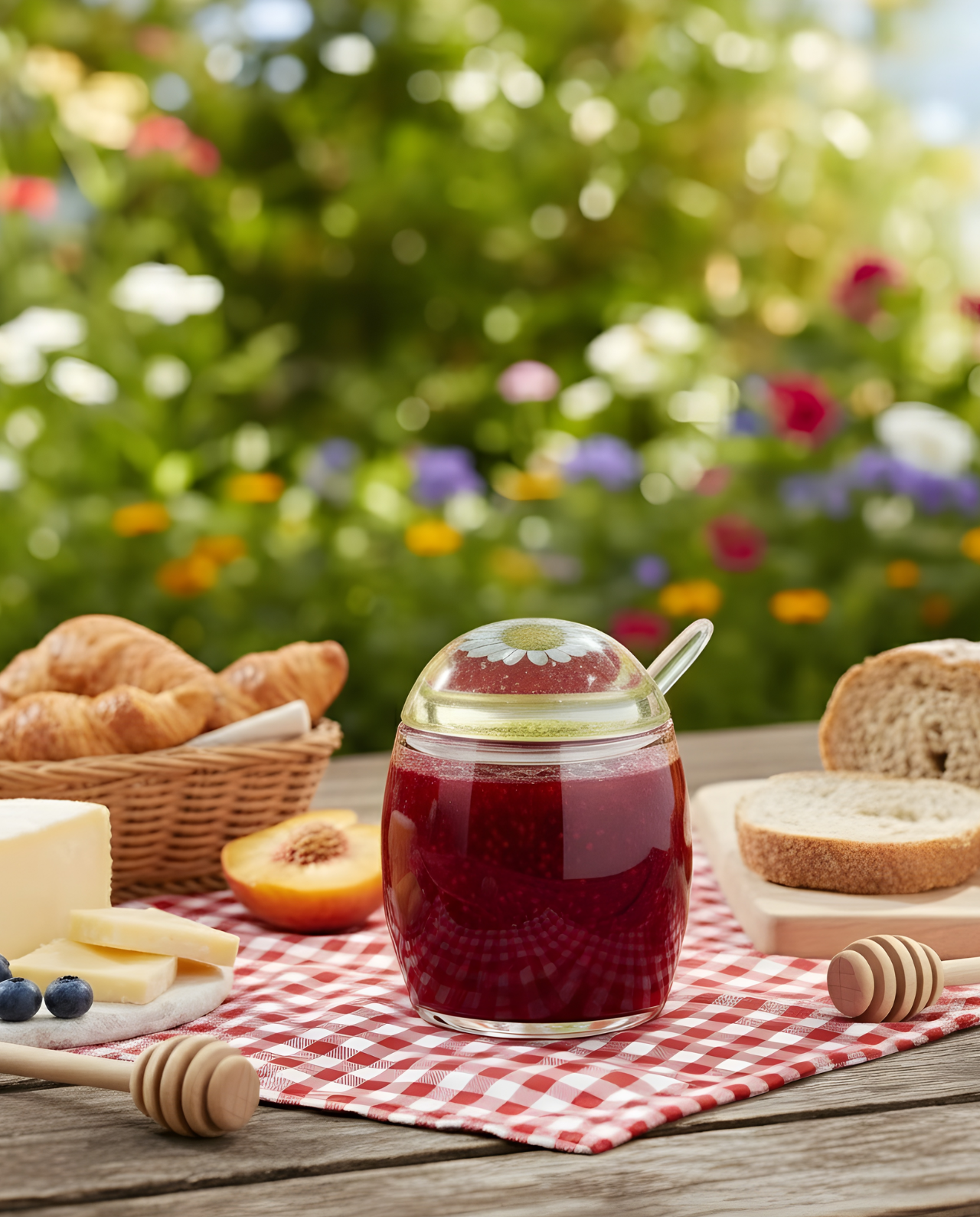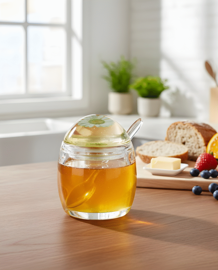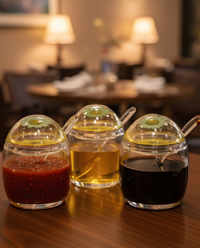 This versatile jar comes with a matching spoon and is perfect for storing and serving jam, honey, sugar, sauces, pickles, and condiments. Its compact yet stylish design makes it suitable for homes, cafés, restaurants, and special occasions. Easy to clean and long-lasting, it combines beauty with functionality.