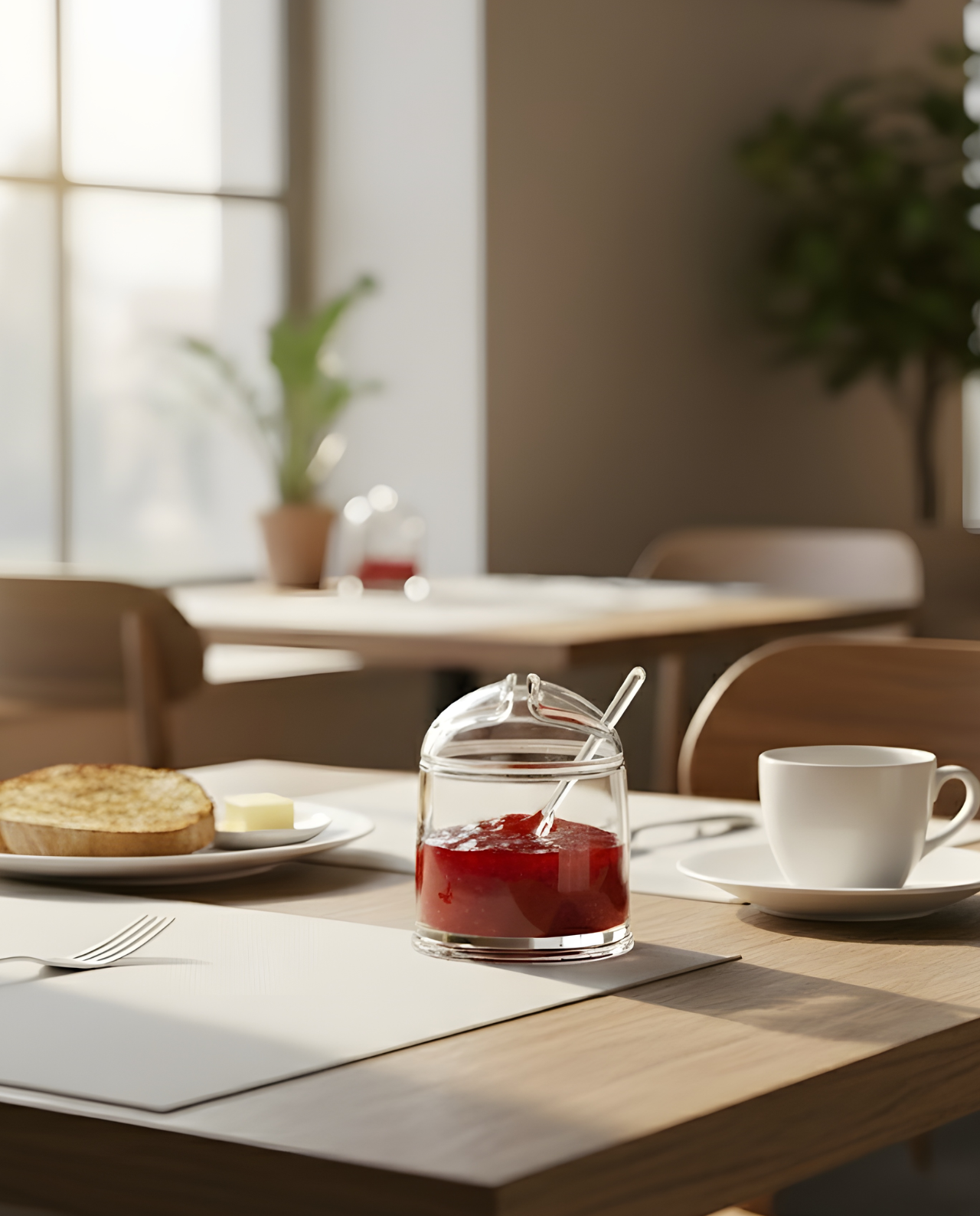 Ideal for serving jam, honey, sugar, pickles, sauces, and chutneys, these jars are designed with a fitted lid and spoon slot for easy, mess-free use. Whether at home, in restaurants, or at parties, they offer both practicality and elegance.