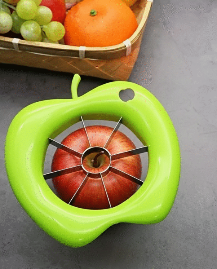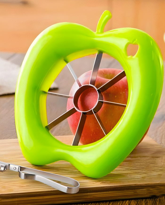 Apple Slicer and Cutter – Stainless Steel Blades, Green Apple ShapeMake fruit preparation quick, safe, and effortless with our Apple Slicer and Cutter. Designed with razor-sharp stainless steel blades and a durable green apple-shaped frame, this handy kitchen tool lets you slice and core apples (and other fruits) in just one push. Perfect for busy mornings, lunchboxes, healthy snacks, or party platters.