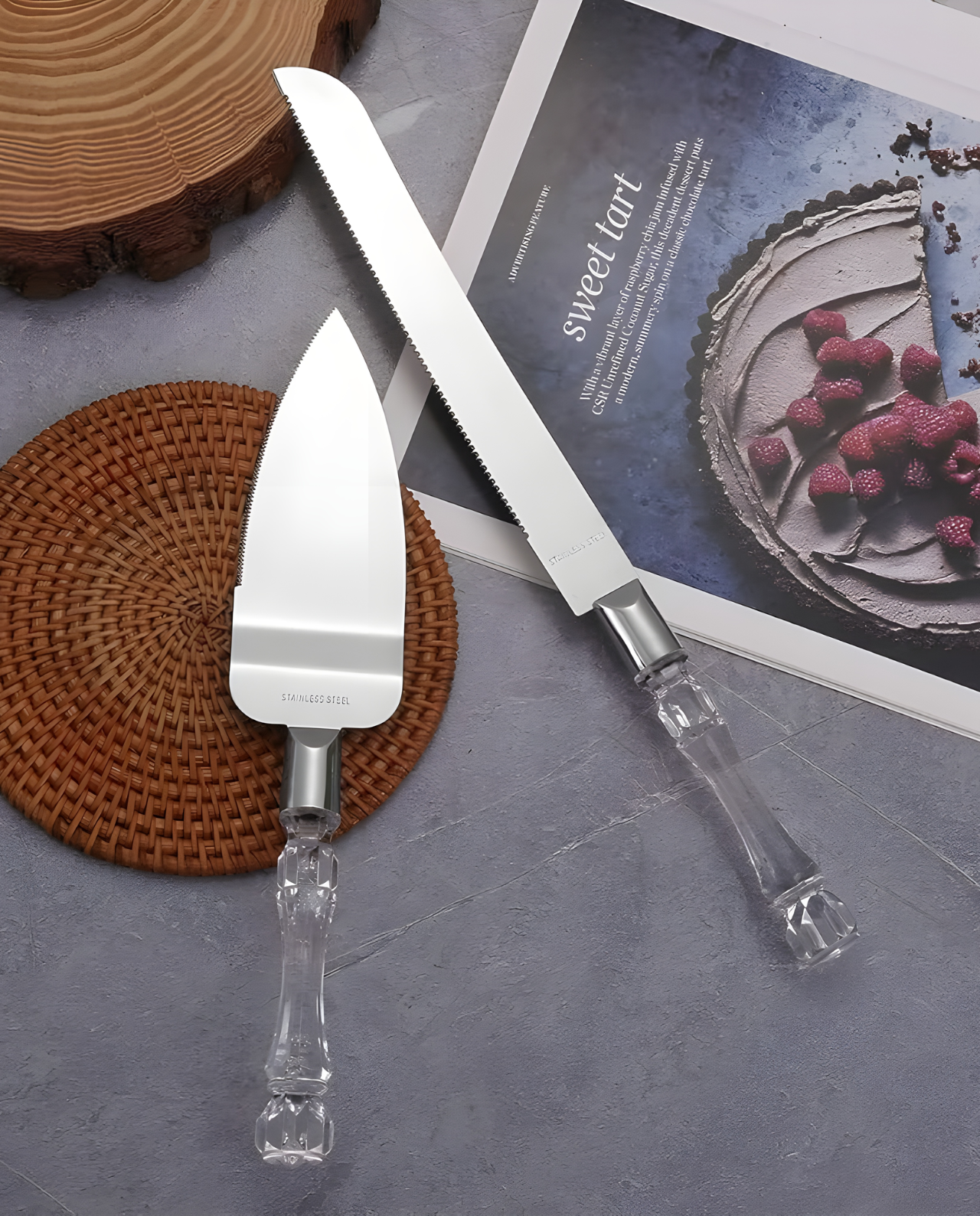 Celebrate life’s sweetest moments with our Crystal Acrylic Handle Wedding Cake Knife and Cake Lifter Server Set. Designed with sparkling crystal-style acrylic handles and premium stainless steel blades, this elegant set ensures precision cutting and effortless serving of cakes, pies, and desserts.