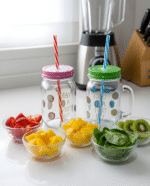 Fun Fruit-Themed Mason Jar Mugs with Straw & Lid!