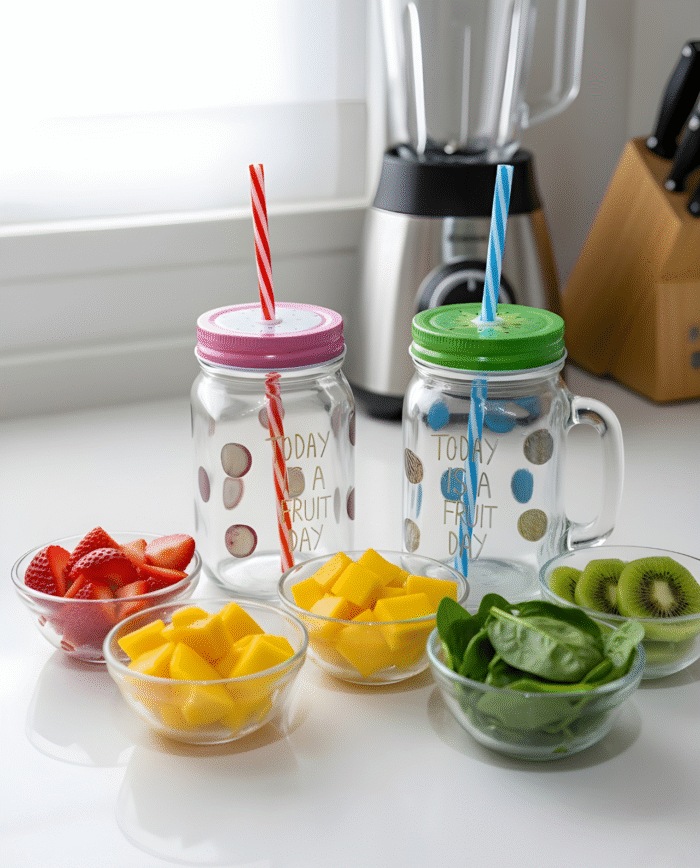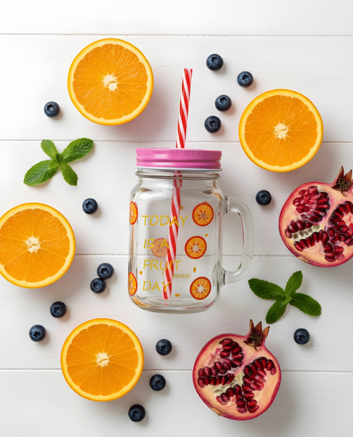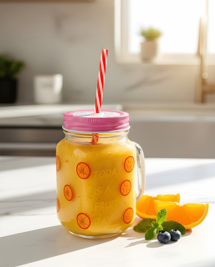 Fun Fruit-Themed Mason Jar Mugs with Straw & Lid!