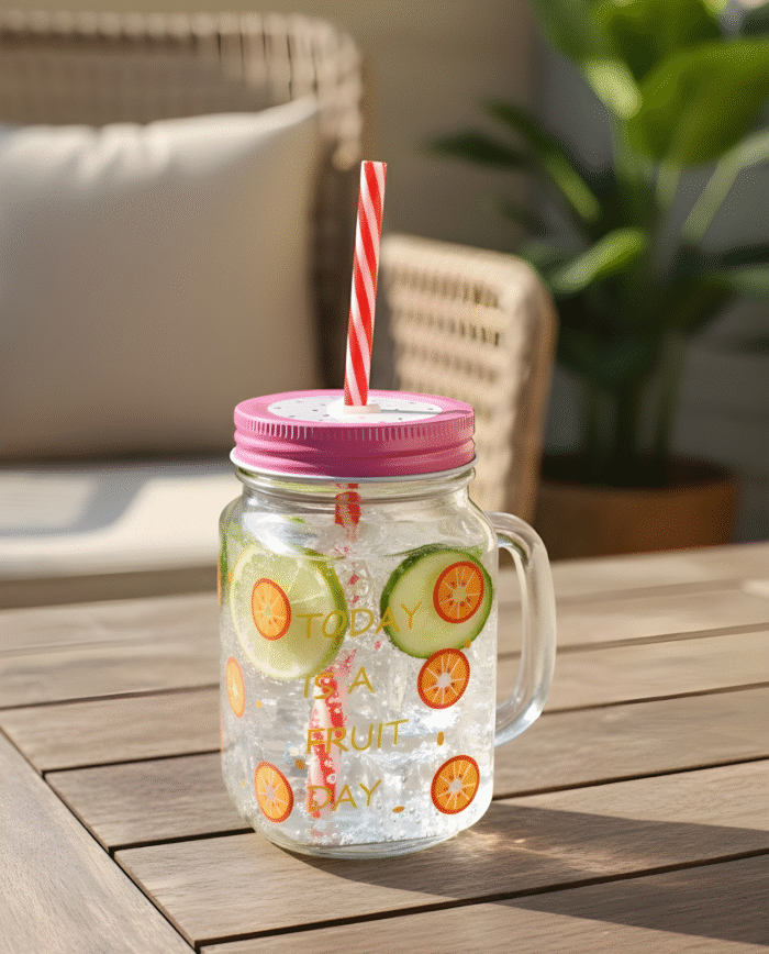 Crafted from durable glass, these mugs are great for smoothies, iced tea, lemonade, water, and more. The sturdy handle ensures a comfortable grip, while the lid and straw minimize spills, making them a fantastic choice for kids’ drinks and adults alike. Easy to clean and endlessly reusable, they’re an eco-friendly alternative to single-use cups. Elevate your everyday refreshment – a perfect gift or a delightful treat for yourself!