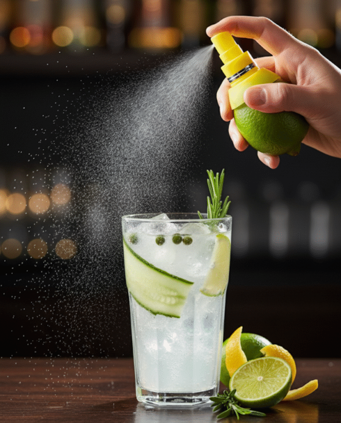 Simply cut the top of a lemon or a lime. Screw the twisted stem of the citrus sprayer into the fruit.
