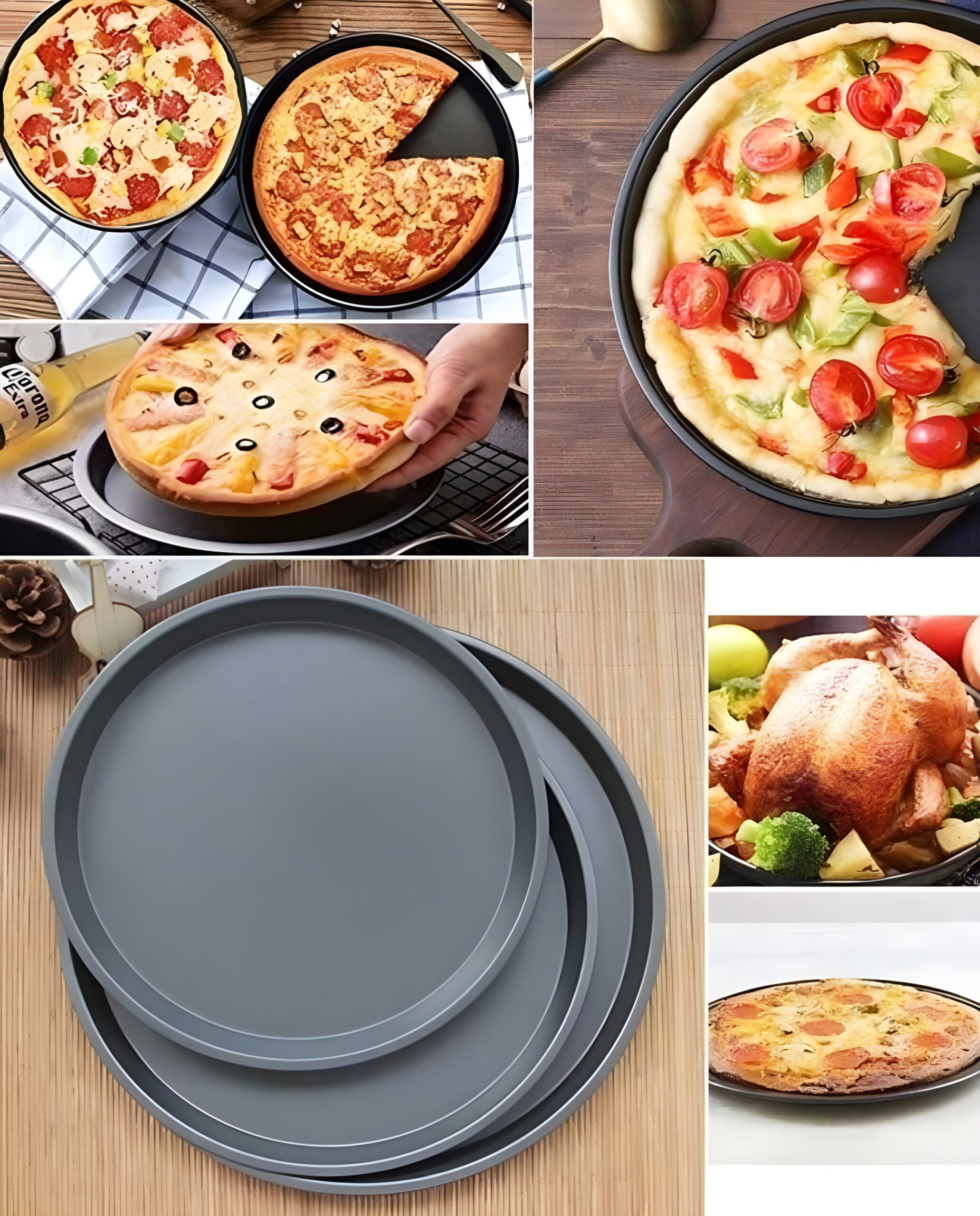 DESCRIPTION=This 3-piece non-stick pizza pan set is perfect for baking crispy, delicious pizzas at home. Made from durable, high-quality steel with a non-stick coating for easy food release and cleanup. Includes three sizes for versatile baking. Ideal for pizza lovers who enjoy homemade creations with effortless results every time.
