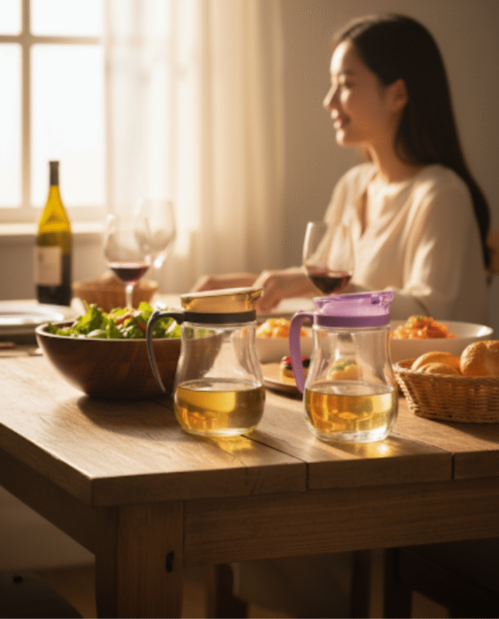 Perfect for storing oil, vinegar, or other liquid seasonings, this pot is ideal for everyday cooking, dining, and entertaining. A must-have accessory to keep your kitchen organized, practical, and beautifully presented.