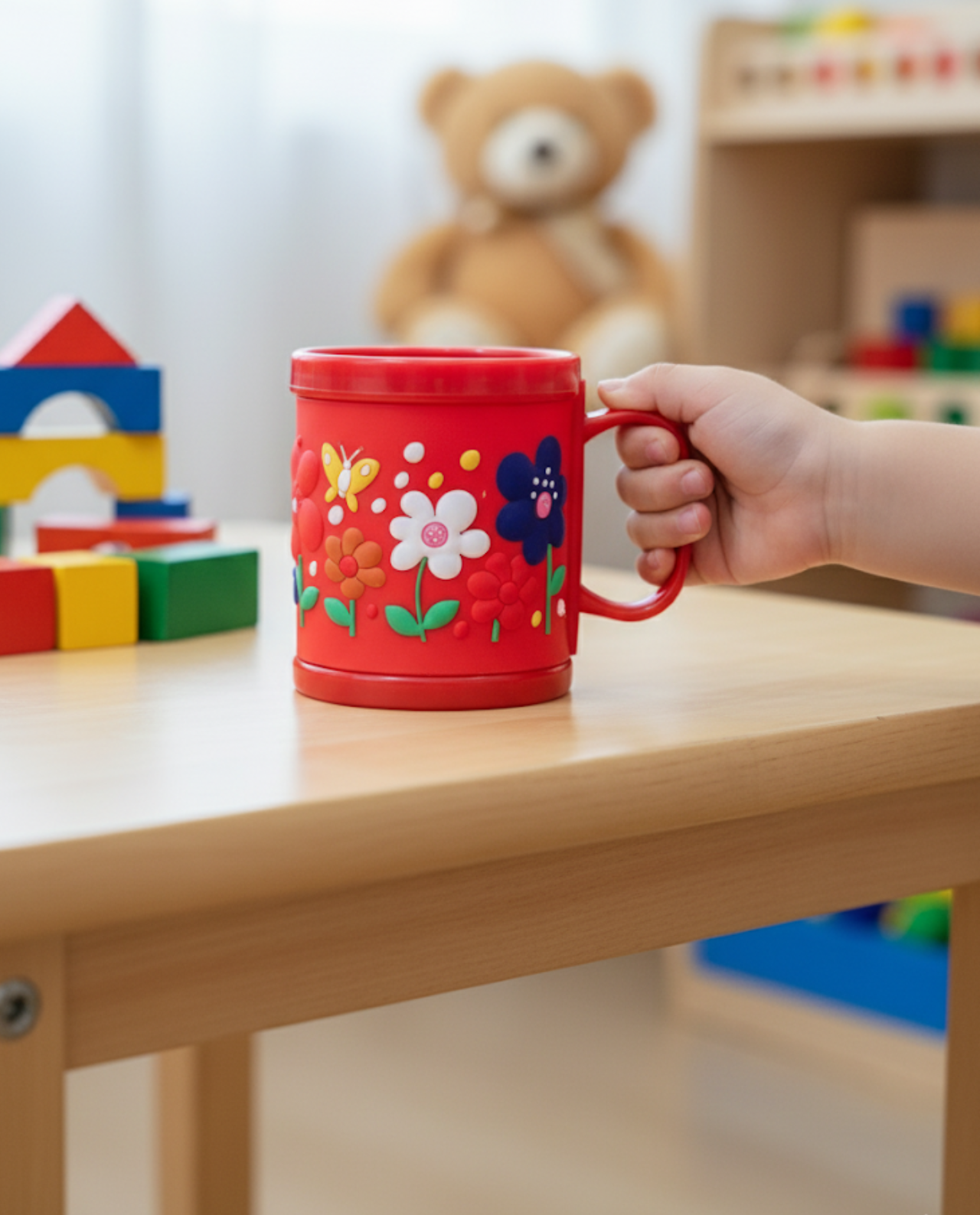 Red Butterfly & Flower Toddler Mug – Sips of Joy for Little Hands!