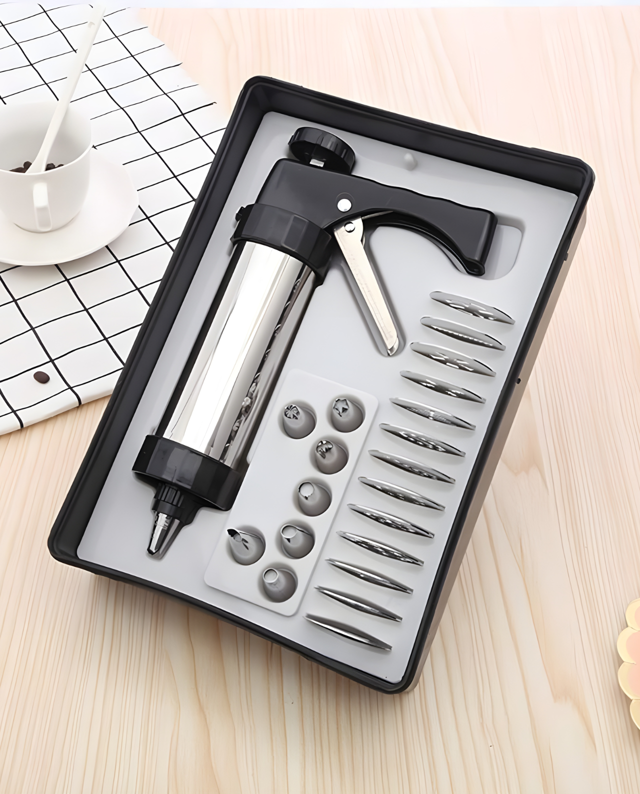 Stainless Steel Cookie Press Set with Biscuit Stencils, Icing Nozzles for Biscuit Making, Cake Decorating