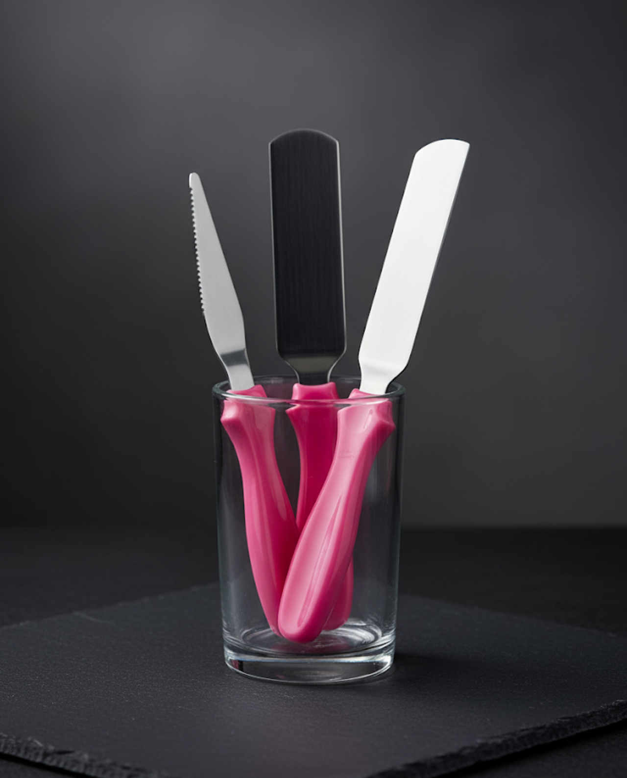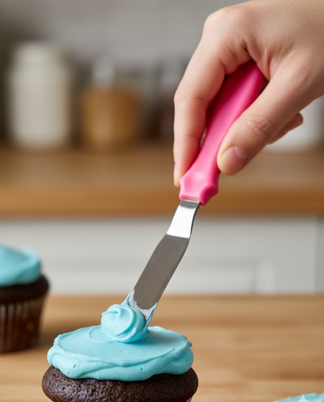 Straight Spatula (Medium): Ideal for spreading batters, leveling frosting, and smoothing large surfaces.